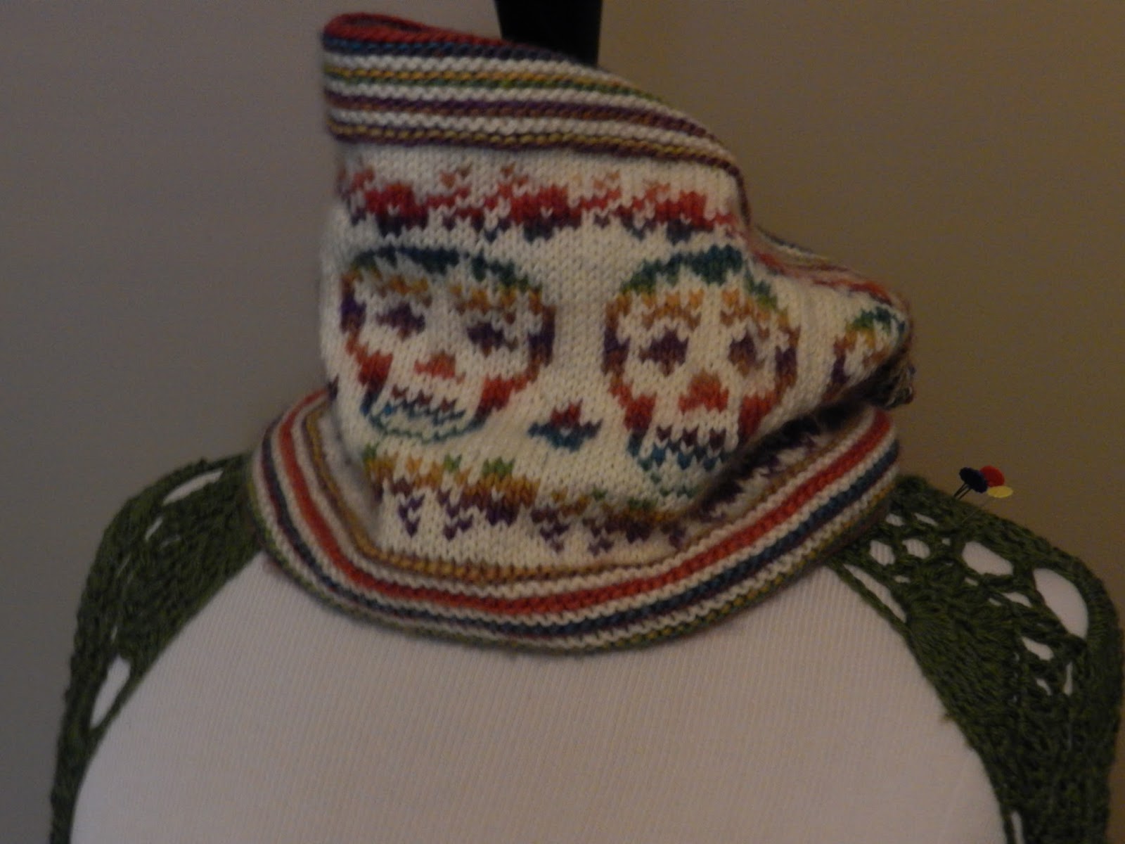 I found this cool pattern in the Love of Knitting Fall 2016 Magazine. Tittle "Day of the Dead", it's a Cowl by Tanis Gray. It's really easy and fun to knit. I've completed knitting it just in time too, it's starting to get a little nippy in the mornings, even so, they still run the AC in my office. This will come in handy when I get a little cold during the work day. This was a enjoyable pattern, and one that I will probably do again. Happy Halloween!